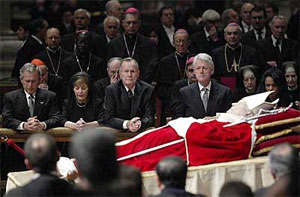 Clinton) in ginocchio davanti alle spoglie mortali del Papa